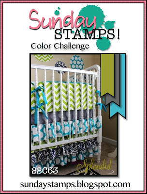 I used Gumball Green, Bermuda Bay & Smokey Slate from Stampin' Up! as my colours. SU! doesn't really have a current "lime" colour anymore, but I thought Gumball Green was a close call and worked really well for this combo. A combo that I really grew to like and think will use again!